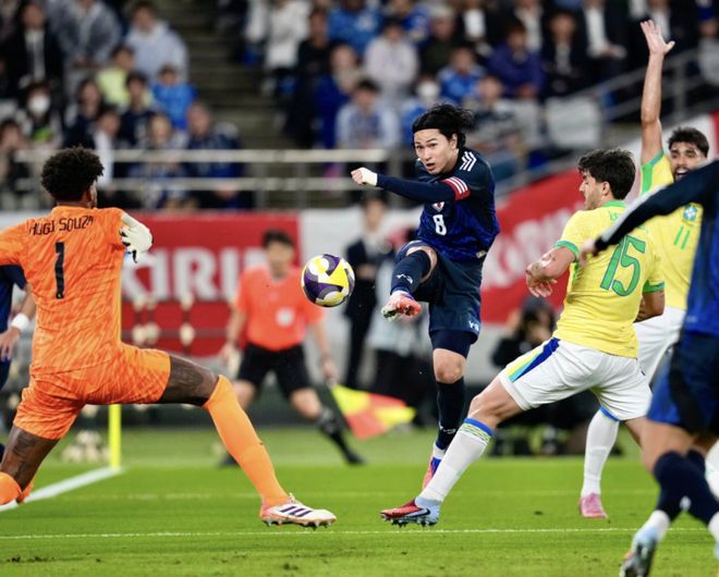 北京时间10月14日晚,亚洲第一的日本队在主场迎战五星级巴西队的一场国际友谊赛。日本队上半场连续丢两球。不过下半场他们连进三球取得领先。日本队邀请巴西队进行一场友谊赛,备战明年的世界杯。目前巴西队以9.15亿欧元排名世界第6位,而日本队则以2.04亿欧元排名世界第19位。日本队的角色强度比巴西队低很多。上半场日本队确实想进攻,但利用机会的能力较弱。第26分钟,巴西队前场防守,保罗·恩里克射门。巴西队做客1-0获胜。拨通电话后,恩里克亲吻了巴西队的盾牌。第32分钟,马蒂内利反击侧边抽射,角度得分。半场结束,巴西2-0领先。数据方面,日本队5次射门,2次得分机会,巴西队3次射门,1次得分机会。下半场,巴西领袖开始放松下来,继续送礼物。第51分钟,巴西后卫布鲁诺低位失误,直接将球传给南野拓实,后者射门破门。日本1-2巴西。第62分钟,日本队右路快速推进,将球传入禁区。中村圭人从后面射门。巴西后卫布鲁诺在门前解围,但实际上却将球直接踢入球门。巴西队连丢两球,比分2-2。巴西的噩梦还没有结束。第71分钟,日本队接到角球,上田佳代抢点大力头球攻门。巴西门将触球却无法阻止从进入网络。日本队以3-2的比分反超。短短20分钟内,日本队连进三球。场边观看的巴西主帅安切洛蒂惊呆了。最终,五星级巴西队2-3不敌日本队。日前,日本队在韩国主场以5-0惨败韩国队。
